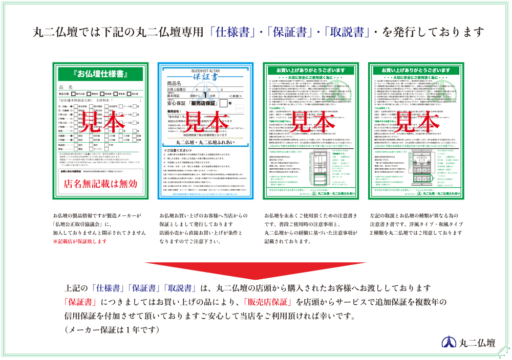 情報開示のある「仏壇公正取引協議会会員」のお店では、表示義務があり、嘘偽り無く表示することになっております、未加入店はその義務が無く表示の信頼度は不明となります、製造工法・主材表示・生産国の表示義務のある「仏壇公正取引協議会会員」店をお薦め致します。