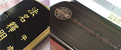 お位牌の文字入れは「PC彫刻」「PC書き」にて自社にて施工しております。PC彫刻は、旧来の「原盤タネ字手動彫刻」の欠点である原盤の摩耗劣化による書体の変化・手動式の為の引きずりによるヒゲ症状(針先が引きずり線がヒゲのように伸びてる仕上がり)PC彫刻では常に同じ状態で彫刻でき仕上がりも安定しております。