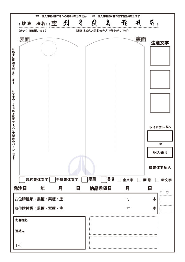 ※丸二仏壇ではお位牌への追加彫りへの「文字サイズ・書体・位置合わせ」に対応可能です。